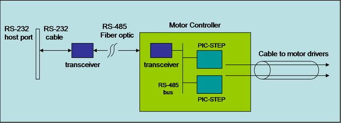 the communication with the motor controller box is done using the RS-485